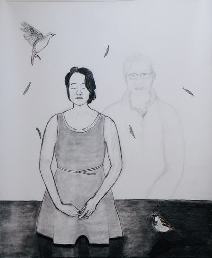 Ik werk aan de hand van foto's die ik kan verbinden aan een sfeer of emotie. Ik gebruik eigen foto's en foto's uit publicaties.